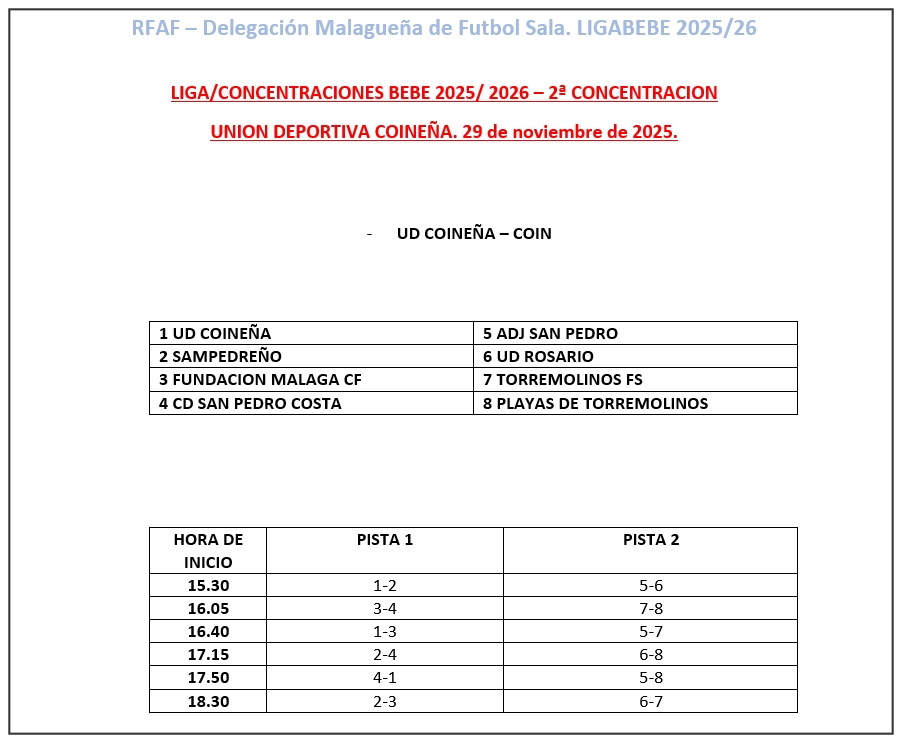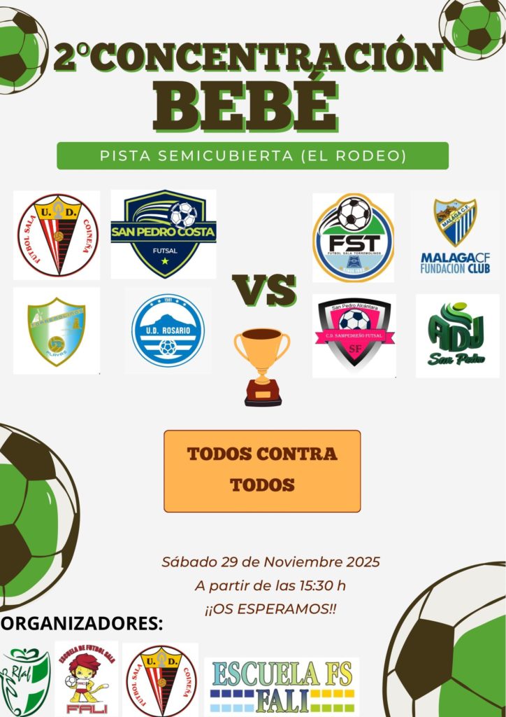 A dicha concentración acudirán los equipos de F.S. Coineño, San Pedro Costa Futsal. F.S. Torremolinos, Malaga C.F. Fundación, Playa Torremolinos, ADJ San Pedro. C.D. Sampedreñol Futsal y nuestro equipo.
